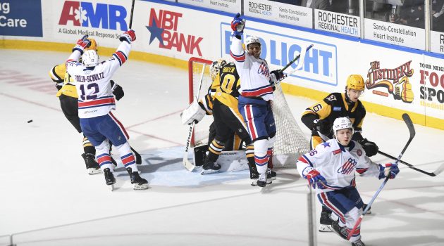 Read MoreA night after recording a career-high four-point night, Konsta Helenius played the role of hero yet again, this time delivering the game-winning goal in the opening minute of overtime to lift the Rochester Americans (5-2-0-0) to a 4-3 win over the Cleveland Monsters (2-1-1-1) Saturday at Rocket Arena…