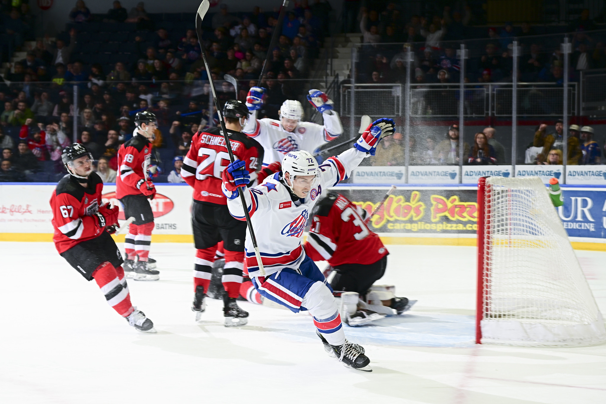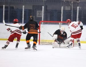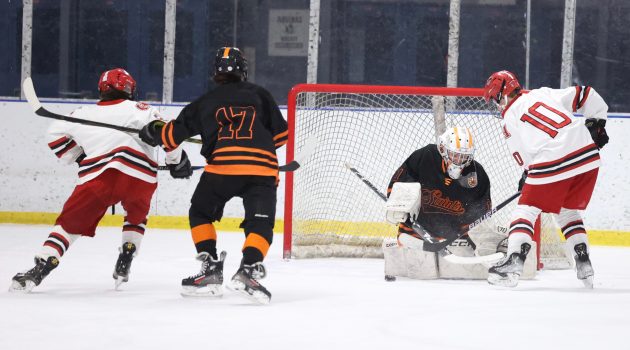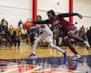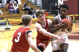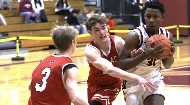 Collin George paced Newark (9-4) with 17 points, three steals, and two assists, and the Reds used a staunch defensive stretch in the first half to put together a lead big enough to withstand a late Palmyra-Macedon rally in a 57-50 win in Finger Lakes East action on Friday night. Newark built 17-5 lead through the first dozen minutes, thanks in part to a nine-minute stretch where it held the Red Raiders scoreless…