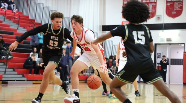 Looking to get back on track after losing eight of their last nine games, the Hilton Cadets hosted the Rush-Henrietta Royal Comets on Monday night. After falling behind early, the Cadets won the second quarter 28-8, taking a 17-point lead into halftime that they never relinquished, pulling out the 62-51 victory…