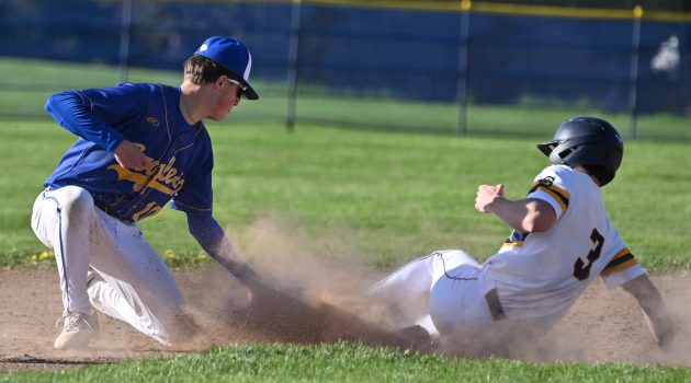 With one out in the fifth inning of a seven-run game, Braedon Reina (Rochester, N.Y./Churchville-Chili) watched four pitches sail past him outside the strike zone. When the final offering of the at-bat went to the backstop, Reina alertly took advantage, rounded the bag at first and headed to second. Then an errant throw gave him another 90 feet and the sophomore advanced to third…