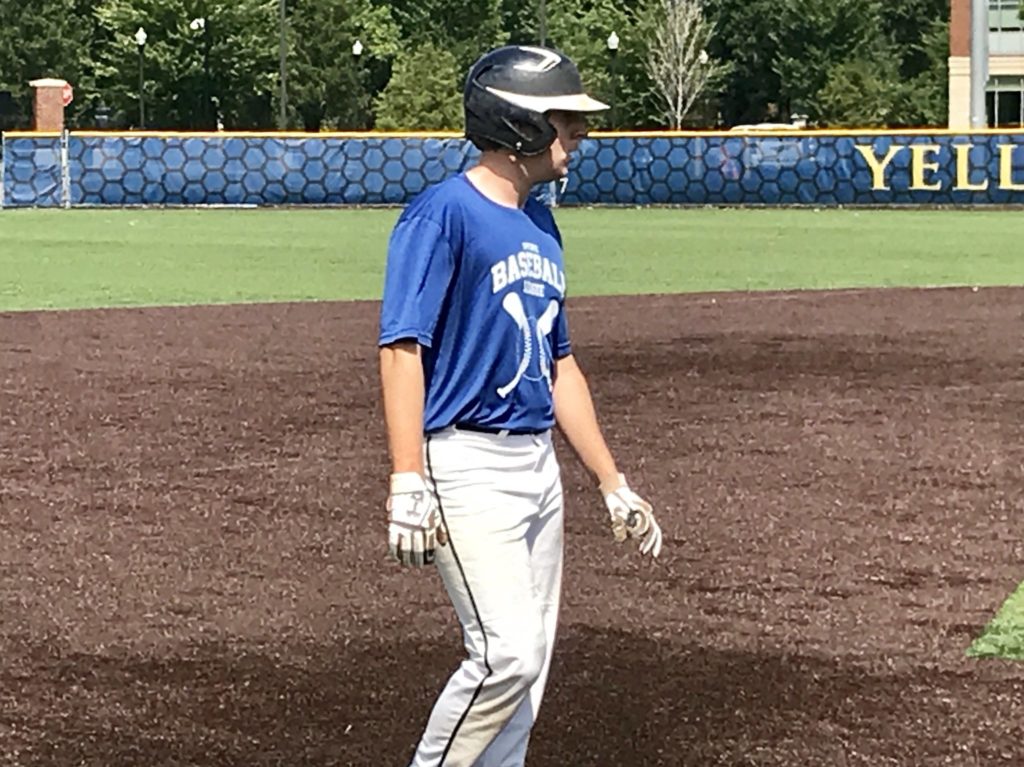 There were also those plays which occurred when the camera was not rolling. AJ DeBalso (DII Blue/Canandaigua) made a spectacular diving stop of a line drive at third. He alertly beat the runner to the bag for a double play. Joe Thompson (DI Gold/Webster Thompson) snared a line drive at third and doubled off a runner at second. Alan Michael LeFrois (DII Red/Churchville-Chili) smoothly fielded a ground ball ball up the middle during Saturday’s first game and turned the 6-3 GDP. Ethan Hurwitz (DI Red/Pittsford Sutherland) saved a throw across the diamond from going into foul territory when he climbed the ladder and in one motion came down and tagged the runner for the out. DJ White (DI Green/Rush-Henrietta) made an impressive over-the-shoulder grab in foul territory on ball just past first base. Then there is Jarod Signorelli (DI Blue/Victor) whose 11 assists lead all shortstops. Smooth and easy up the middle of the diamond, Signorelli has a habit of making difficult plays look routine. And there was Drew HerrNeckar (DI Gold/Hilton):