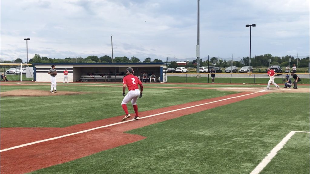 Nick Ianiello (Penfield) and Ryan Coughlin (Greece Athena) connected on back-to-back RBI sacrifice flies in the second inning as DI Red (6-1-2) took a lead it did not surrender and won its fourth straight game. Nolan Hicks (Fairport) scored on Ianiello’s sacrifice, and Will Van Fleet III came home on Coughlin’s helper for a 3-2 Red advantage.