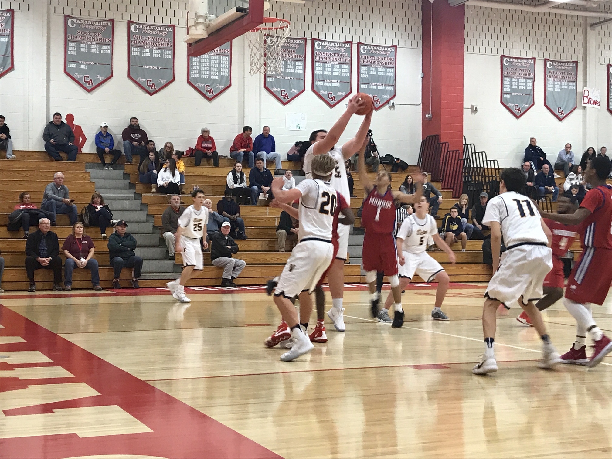 CANANDAIGUA, N.Y.– Junior guard Matt Caggiano and sophomore forward Connor Williams combined for 32 points as the Victor Blue Devils (1-0) held on late to defeat the Monroe Red Jackets (0-1) 60-59 in the first round of the Finger Lakes Tip Off Tournament at Canandaigua Academy.
