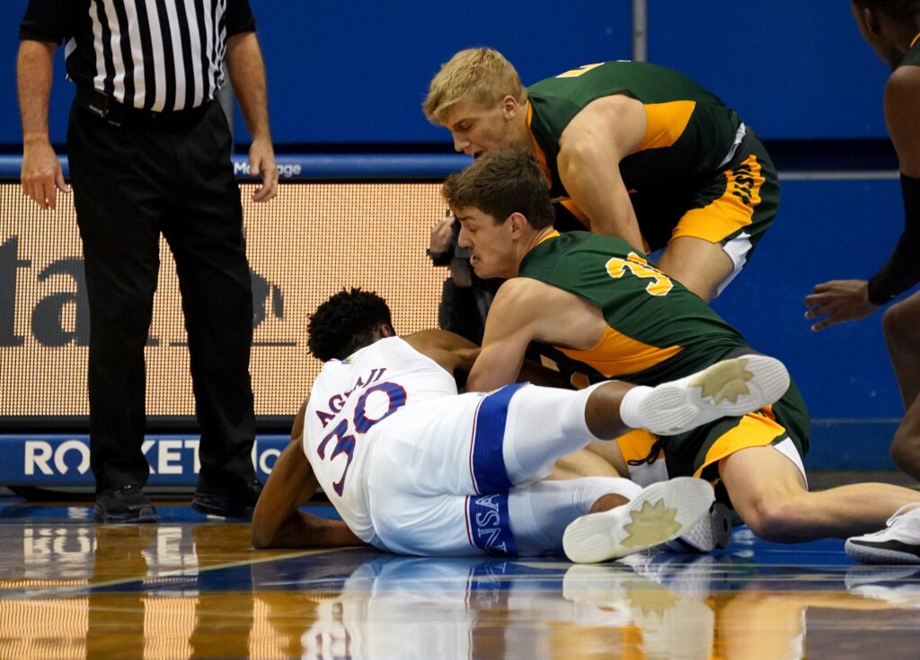 Jalen Wilson posted a double-double for Kansas with 14 posted and a game-high 15 rebounds. Ogbaji added 13 points.
