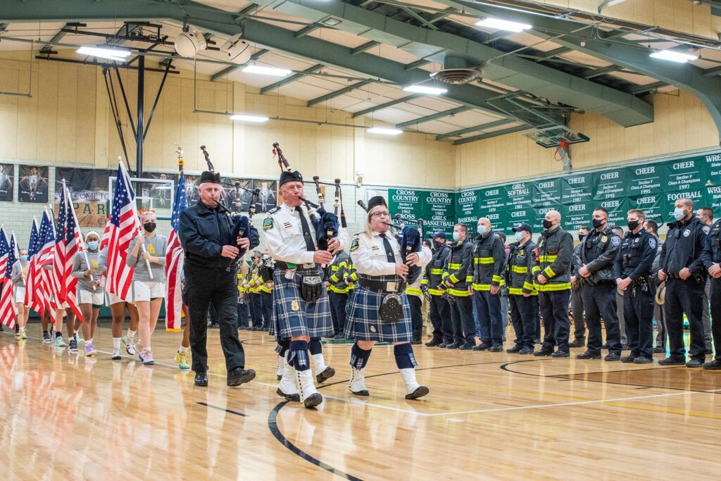 The game was dedicated as First Responders’ Night with Medal of Valor and Purple Heart recipient Denny Wright on hand as well as former Greece Police Chief Patrick Phelan, former Rochester Police Chief La’Ron Singletary as well as members of the Greece Police Department and the Ridge Road Fire Department.