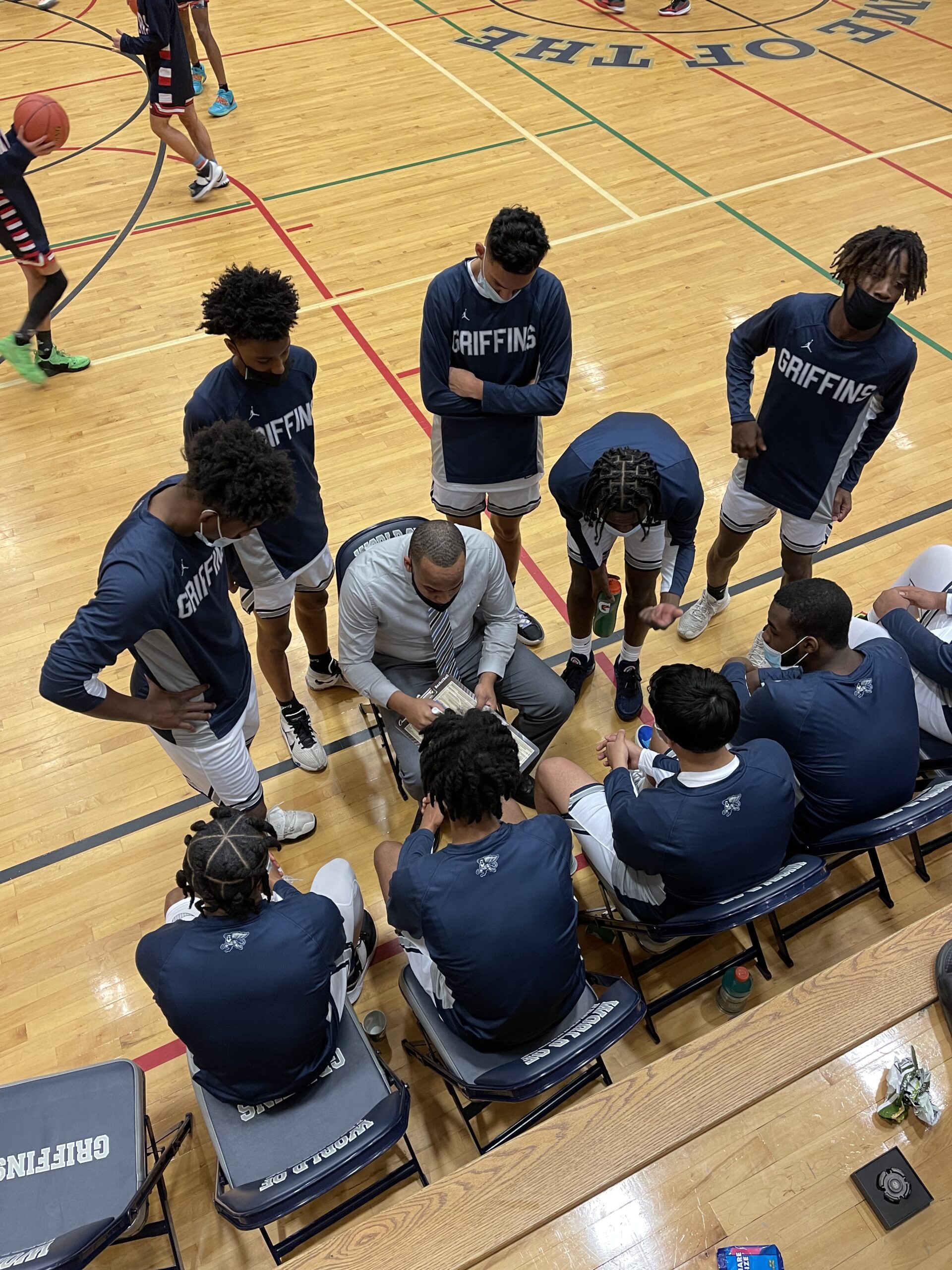 World of Inquiry’s Jalen Breedy used a drop step in the lane for two and hit a free throw to jump start the Griffins.