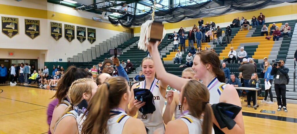 East Rochester’s girls basketball team won the 2021 Class C1 girls basketball title on their home floor, something that may never be done again. And yet, there was still something missing. The opportunity to make a state run. They took the first step, beating Alexander 61-37 behind their only senior, Sam Lewis, who scored 34 points, 17 in each half, to lead the Bombers to their second straight title. READ MORE.