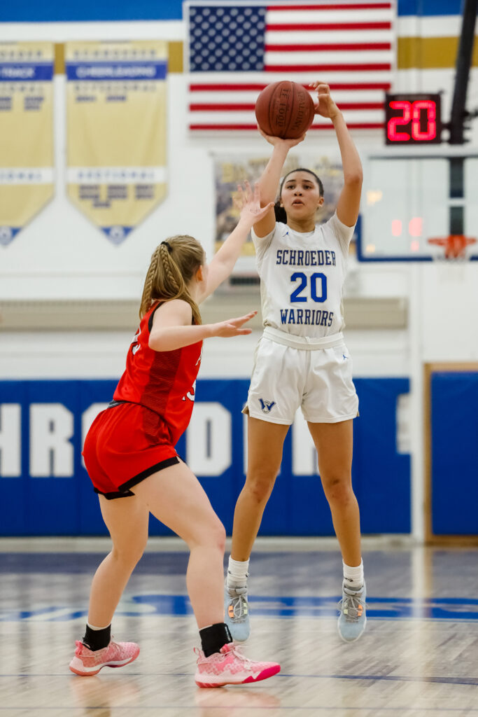 Four players scored in double figures, and Webster Schroeder used a 22-11 advantage in the third quarter to pull away from a single-possession game. Leading 25-22, Mariah Watkins scored seven of her game-high 17 points in the frame. Mya Perales and Bria Watkins added six points apiece in the third while Addison Morgan connected from long range, and the Warriors took a 14-point advantage into the final eight minutes of play. The win over Penfield was the first for the Schroeder girls’ program since 2003. Morgan and Perales both scored 10 points. Bria Watkins had 13. Ava Gallup (5), Sarah Ferruzza (4) and Kylie Clement (2) also scored in the game. Schroder is outscoring its opponents by a average margin of 19.3 points per game. Grace Alexander and Emily Fordham scored 12 apiece to lead Penfield. Jackie Funk added 11 points. Lena Lipani (5), Ashley Kalvitis (2) and Anna Coyle (2) also scored for the Patriots. Penfield was coming off a win over Spencerport on Wednesday.