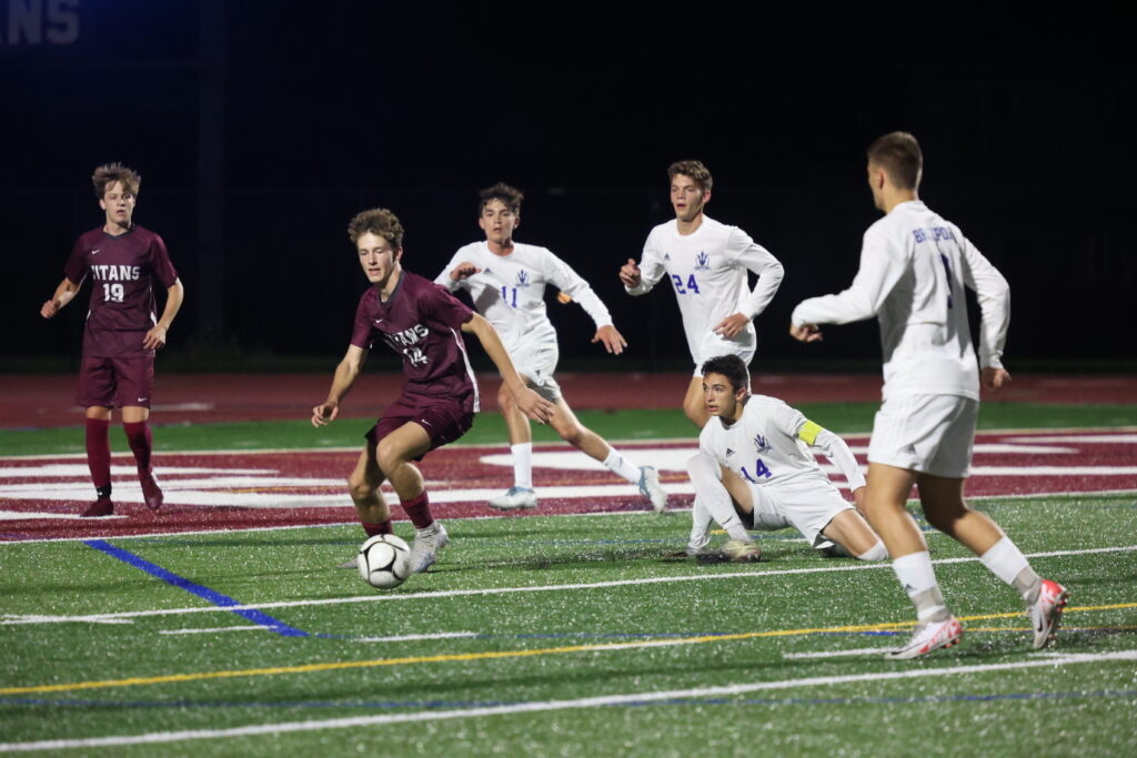 The corner kick was the third in a span of 10 minutes for the Titans. Ethan Cesario played a service from the left flag.