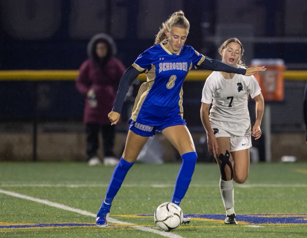 WEBSTER, N.Y. — Leah Marcell scored the game winner in the second overtime period, and No. 2 Webster Schroeder defeated No. 7 Greece Athena, 2-1 in Section V Class AA Girls’ Soccer action on Saturday.