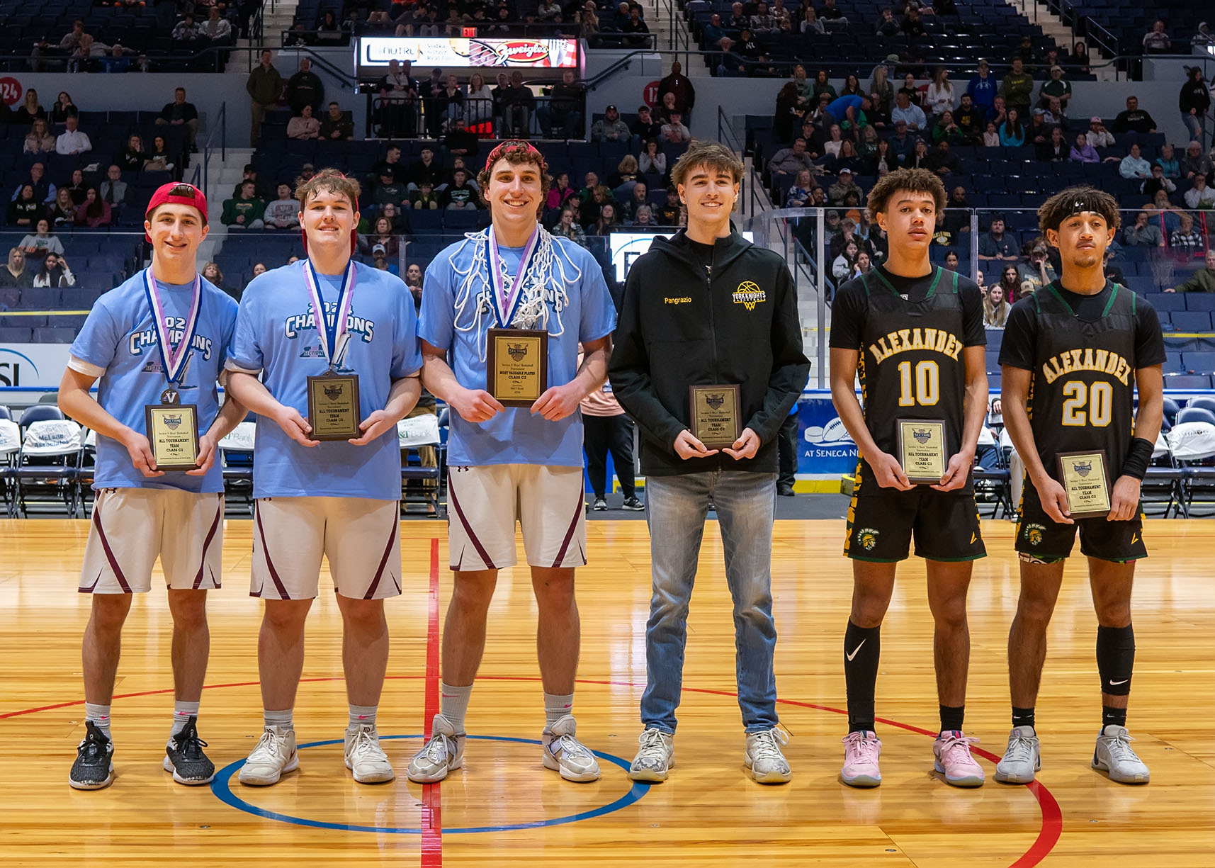 Colin Martin (Byron-Bergen), Brody Baubie (Byron-Bergen), Kingston Woods (Alexander), Trenton Woods (Alexander), Jake Pangrazio (York) and Kingston Loucks (Bolivar-Richburg). MVP: Braedyn Chambry (Byron-Bergen).