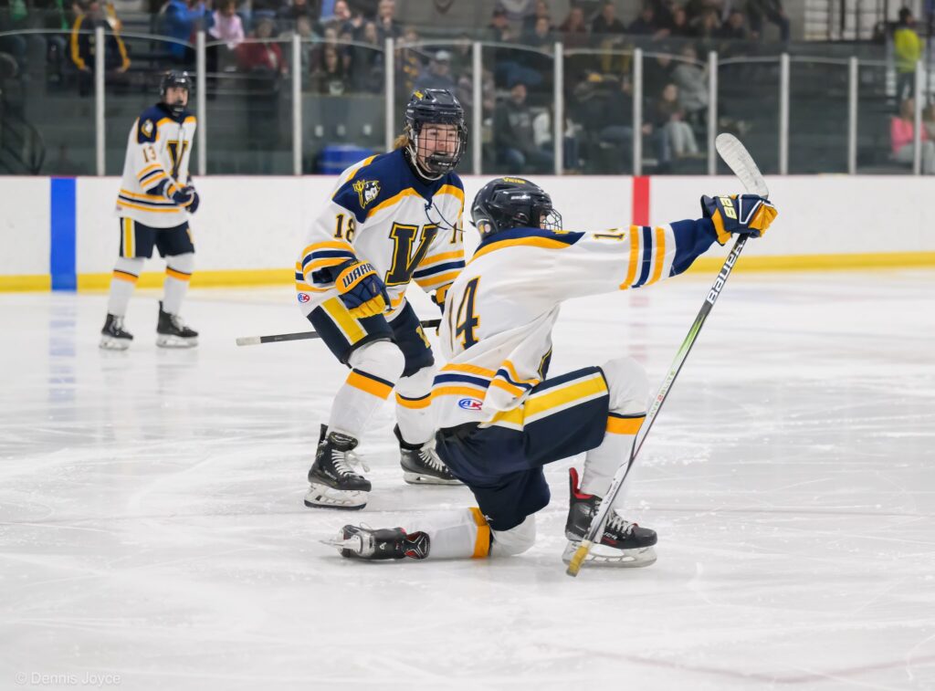 Victor used a strong third period to help them force a tie against Batavia Notre Dame in a back and forth contest. The United’s Jameson Motyka opened the scoring in the first period with assists from Brady Johnson and Luke Staley. Victor’s Oliver Kowal tied the contest early in the second with some help from Ryan Fronczak. Batavia Notre Dame would score the next two goals in the middle starting with a tally from Cade Shamp with an assist from Jake Hutchins. Chase Cummings connected with Hutchins and Motyka on the power play. Victor came back with two of their own in the third when Jack Abbott cut the lead in half early in the period with an assist to Charlie Seiler. Kowal tied the game as an extra attacker with less then a minute to go in regulation with assists from Caleb Clark and Dylan Weldon. Nathan MacBride made 38 saves for Victor while Rhys Tanner stopped 29 shots for Batavia Notre Dame.