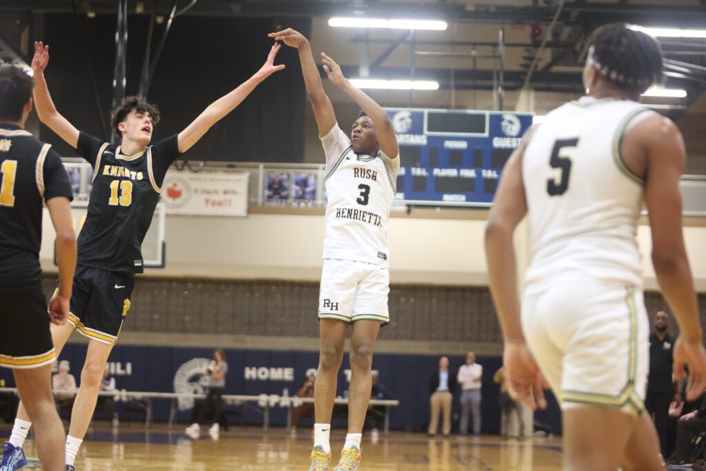 ROCHESTER, N.Y. — Jalen Taggart scored 26 points and Avery Council added 21 to lead top-seeded Rush-Henrietta past No. 5 McQuaid, 65-57 in Section V Class AAA action from Gates Chili High School, Monday night.
