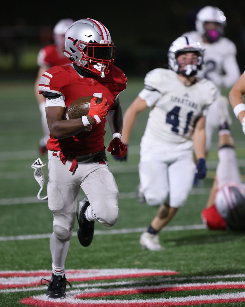 When Gates Chili lined up for a punt with less than a minute left in the half, Thomas was barely touched on any of the 63 yards he covered on the return that gave the Gray Wolves a 20-0 lead heading into halftime. And when the CA defense opened the second half with another three-and-out for the Spartans offense, followed by a 10-yard TD pass from Kierst to Cayden Gullace to cap a 54-yard drive, the 27-0 lead was as commanding as it looked.