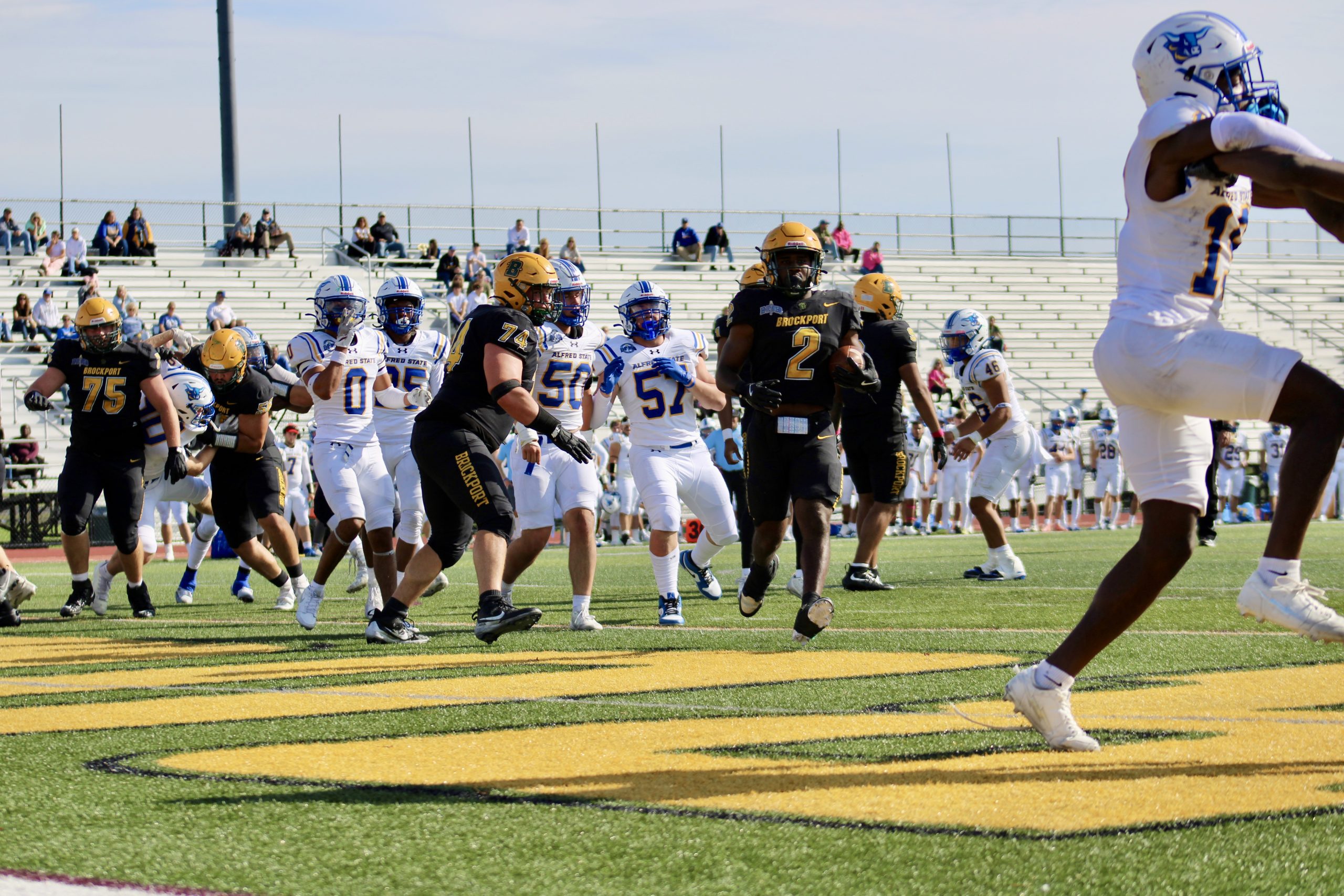Offensively, the Golden Eagles came out firing. After a 20-yard run by junior running back Isaiah Simmons to start the opening drive of the game, junior quarterback Ben Gocella threw a screen pass to senior wide receiver Daniel Manneh. Manneh then made multiple defenders miss, taking the pass 66 yards to the house to give Brockport a 7-0 lead.