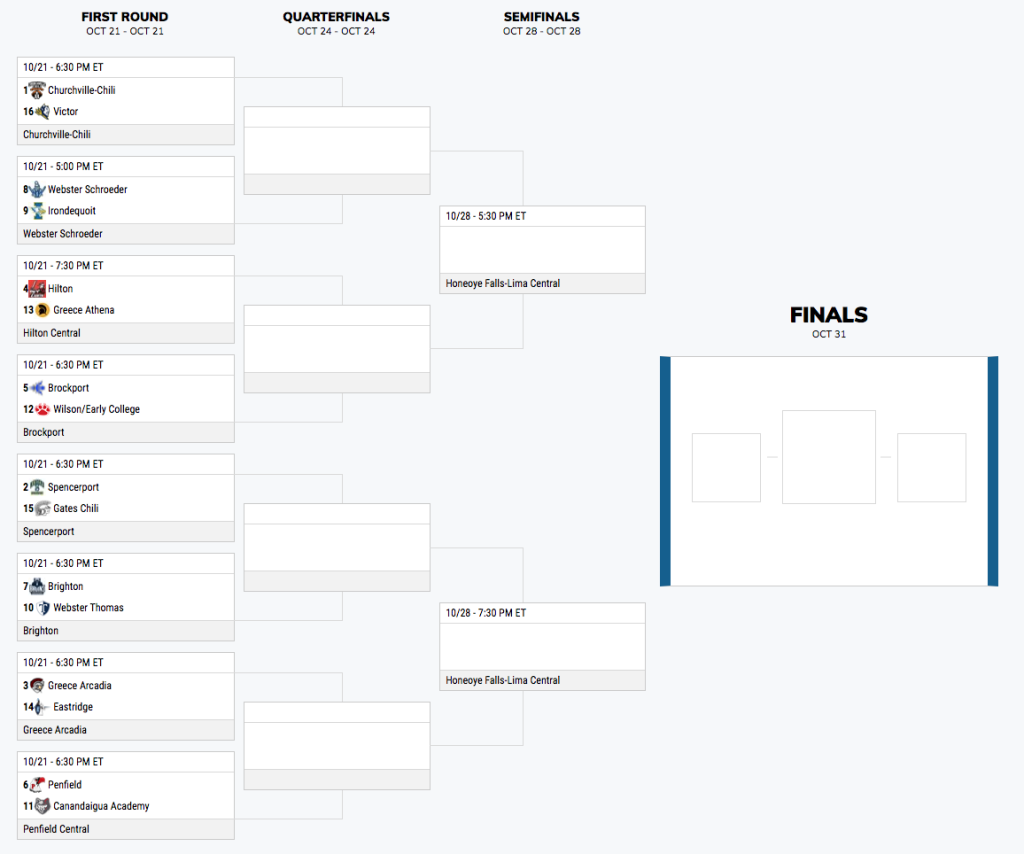 The 2025 Section V Class AA Boys’ Soccer brackets features 16 teams: of those, 15 are from Monroe County leagues and one from the Rochester City Atlantic Conference. The opening round of the tournament kicks off on Tuesday, Oct. 21 with the title game scheduled for Halloweeen night, Friday Oct. 31st.