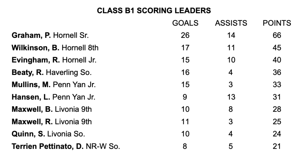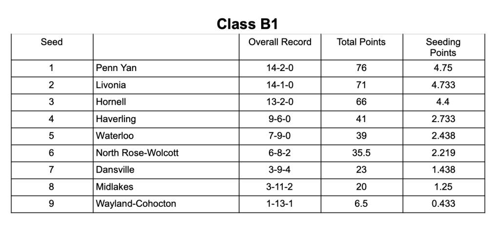 Haverling hopes to win its fifth title in six years after losing in the Class B finals against Hornell 2-1 a year ago. The Rams head into the postseason on a three-game win streak, and Livonia heads into the postseason on a seven-game win streak. Dansville is looking to get revenge against Livonia after losing both regular-season matchups by a combined score of 11-1.