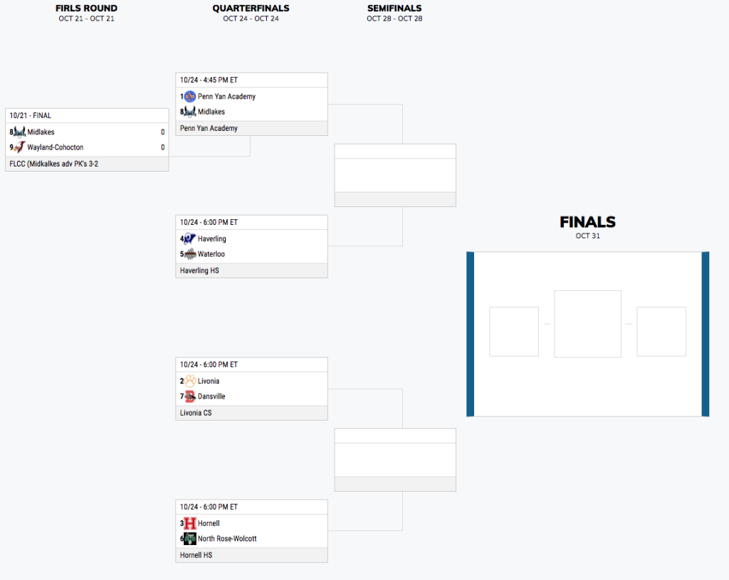 First round action begins on Tuesday with Midlakes at Wayland-Cohocton battling it out for a chance to face Penn Yan Academy on Friday in the quarterfinals.