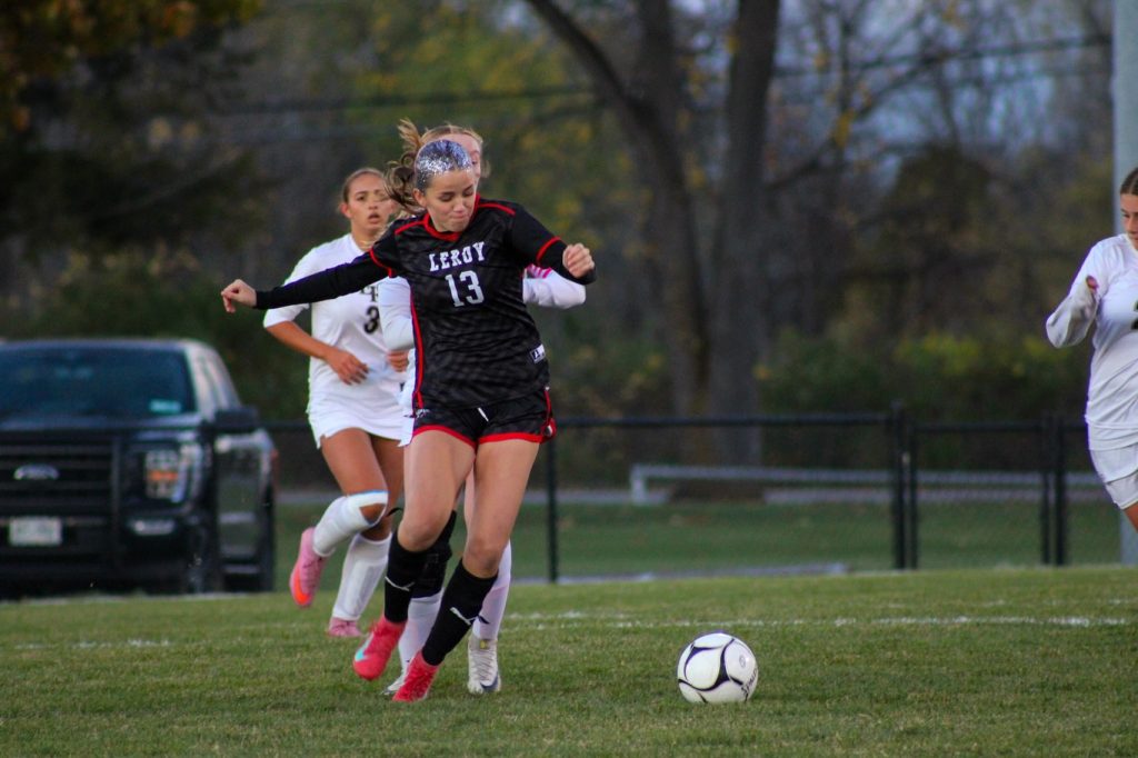 Jenna Sherman and Allison Vallese combined for two goals to help Le Roy claim a Class B2 first-round win. Bailey Caton contributed an assist on both goals for the Knights. Madison Paddock recorded eight saves and a shutout in net. No. 8 Le Roy will advance to the Class B2 quarterfinals and travel to face No. 1 Williamson on Friday.