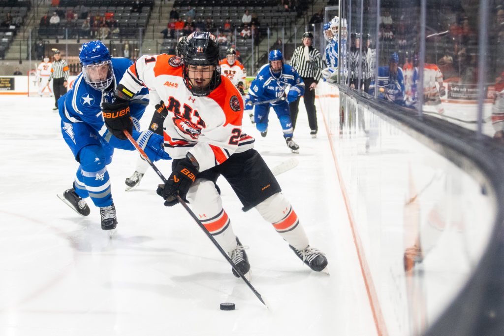 Skalos, who played the previous two seasons at Mercyhurst University, scored a goal and set up three while Cobetto-Roy scored RIT’s first goal and assisted on another as the Tigers roared past the Air Force Falcons 7-3 at the Gene Polisseni Center.