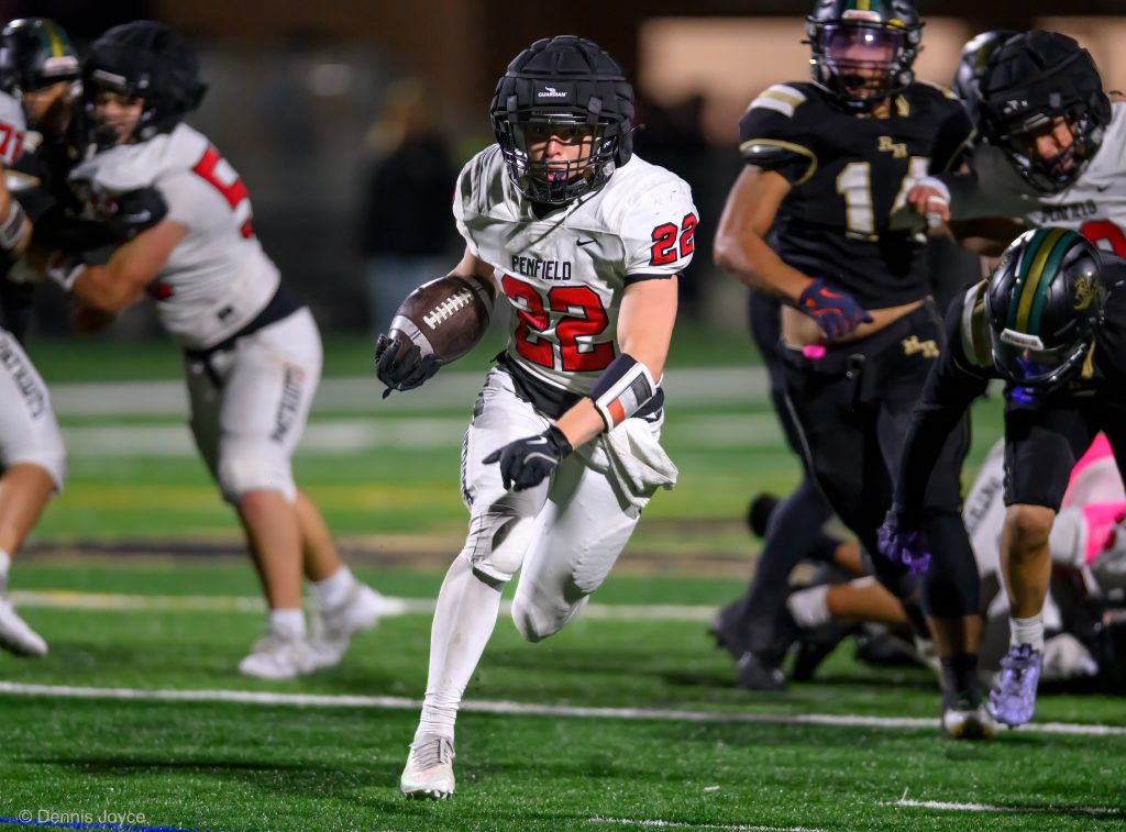 Zane Kropman rushed for 154 yards and two touchdowns as Penfield won its third straight game. Dom Giunta connected with Alex Mcvean for a touchdown, while also rushing for 50 yards, making four tackles, and recovering a fumble. McVean also made an impact defensively with four tackles. Ronan Boyle tallied three tackles and a sack. Evan Layton led the Patriots with seven tackles, and Nate Masters recorded four.