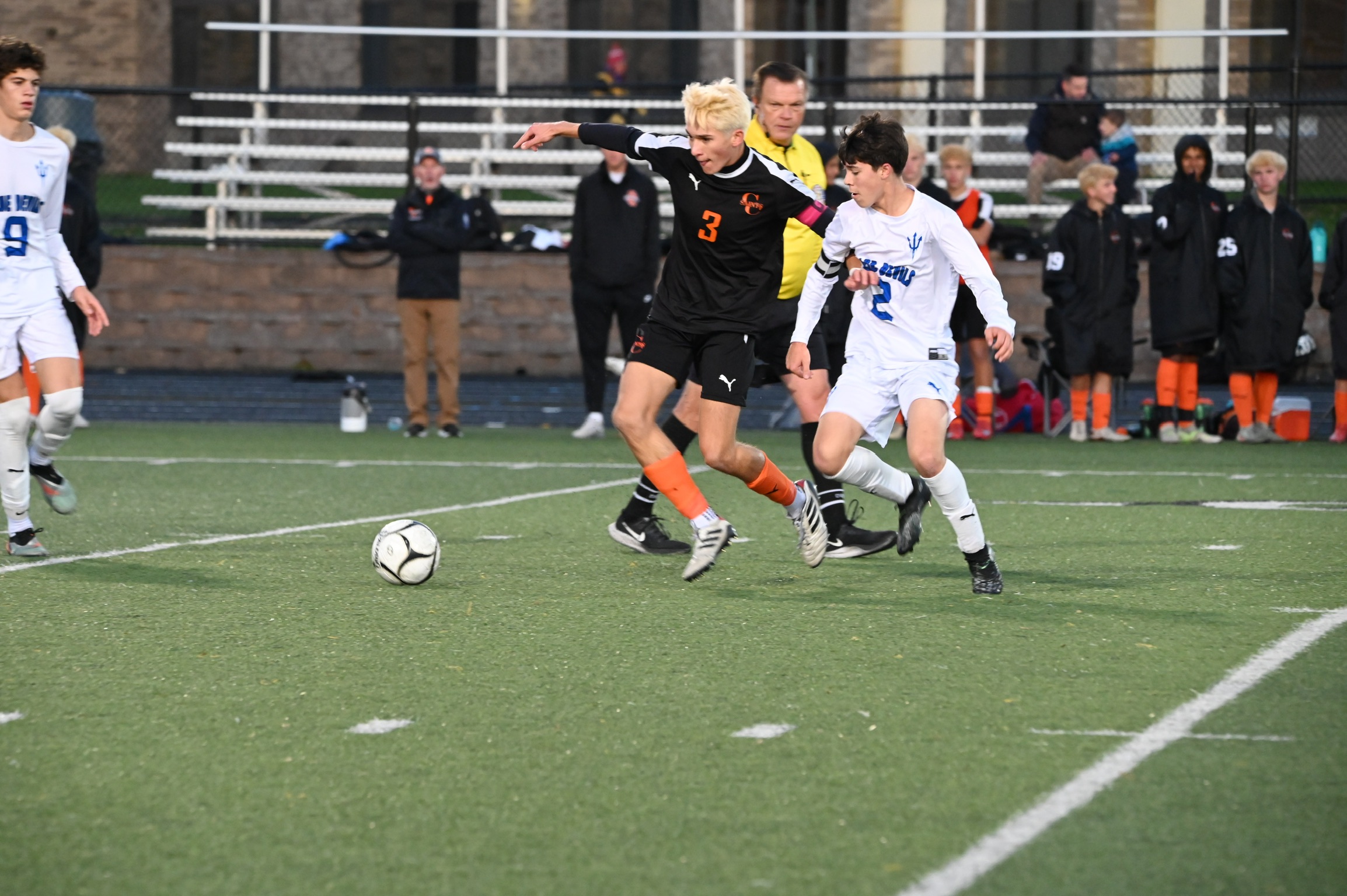 Jackson Forney netted the game-winning goal with two minutes left in regulation off an assist from Evan Zavalo to clinch a spot in the finals for Pittsford Mendon. Zavalo finished the night with two assists as the senior found Benjamin Burrows who scored the first goal of the game just four minutes in. Naveen Sidhu scored the second goal of the night 10 minutes later thanks to an assist from Colin Krohn. Carmen Esposito made four saves between the posts. The Vikings will face cross-town rival No. 2 Pittsford Sutherland in the Class A championship at Webster Thomas High School on Halloween night at 6 p.m.