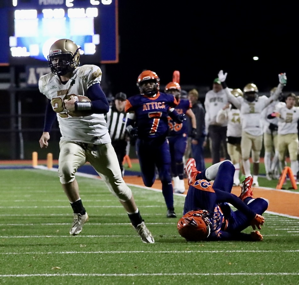 Jack Clark had 14 carries for 60 yards and a touchdown, while Payton Holtby caught a one-handed touchdown pass with one second left on the clock for Canandaigua. Brockport will face No. 1 East/WOIS in the Class A2 title game on Nov. 7 at SUNY Brockport.