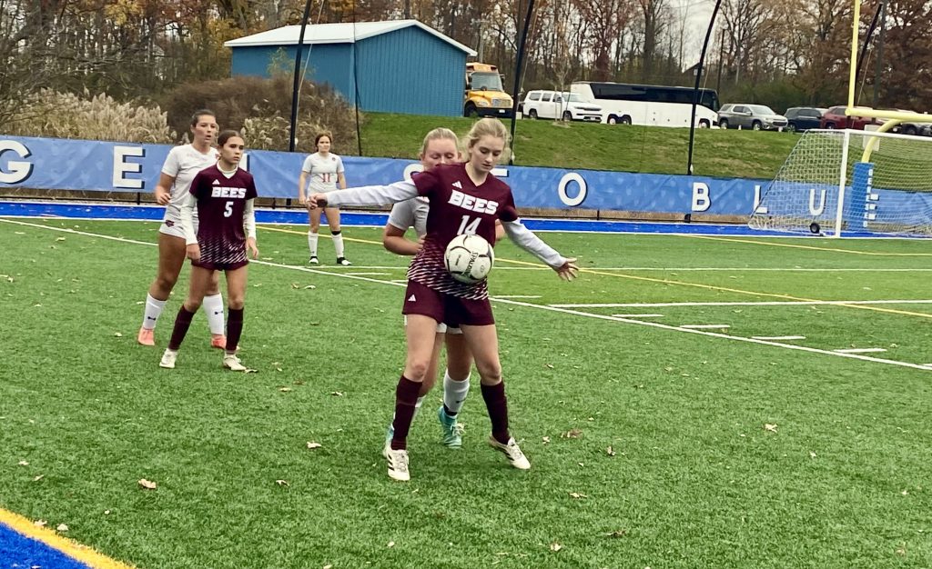 And for the remainder of the first half, it worked. The sides were level when it came to pace and sophomore Addison Elia made a number of runs that provided scoring threats and showed the Bees that they weren’t quite finished for the day. And when Lilly Gurski’s direct kick from about 20 yards out late in the half forced a leaping save from Byron-Bergen goalkeeper Rylee Burch, the message was clear. Wilson wasn’t finished either.