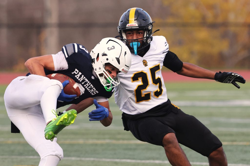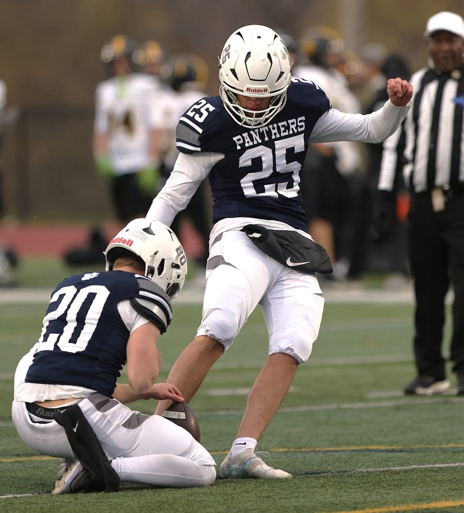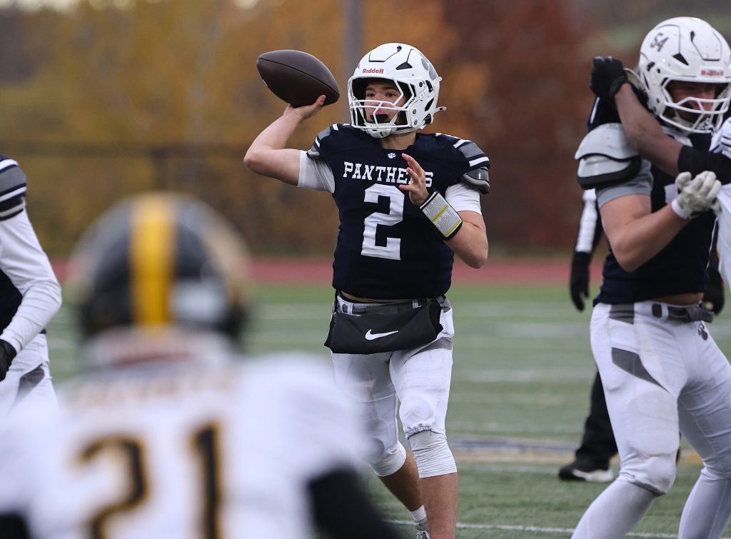 A three touchdown day by Brody Pusateri propelled Pittsford through the semifinals. Pusateri was 13-for-19 with 166 yards through the air, including tossing a 44-yard touchdown pass to Jesse Jablonsky and a 37-yard scoring strike to Dayshawn Preston. It was one of two touchdowns for Preston, who also racked up 76 yards receiving and made two interceptions on defense. Eric Chen led the Panthers with 76 rushing yards, while Jablonsky tallied 71 receiving yards while making seven tackles and a punt block on defense. Max Ciavarri led Pittsford with 14 tackles. Mason Harrington (8) and Justin Hanson (6) also got in the tackle column. Lorenzo Geminiani Vega hit a 25-yard field goal. Pittsford will face Penfield in the Class AA championship game on Nov. 15 at SUNY Brockport.