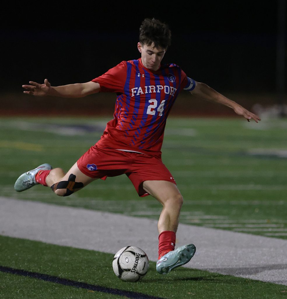 Players to watch for Fairport: Sean Griffin Sr. A (13 G, 7 A); Trevor Scoppa Jr. A (10 G, 6 A); Justin Burton Sr. A (9 G, 4 A); Francesco Maniscalco Jr. A (6 G, 1 A); Alex Grejda Sr. D (6 G, 1 A); Brock Stephany So. M (2 G, 8 A); Jackson Piacitelli Sr. M (3 G, 4 A); Tim Donner Sr. D (3 A); Preston Richards Sr. D (1 G); Andrew Kohl Sr. M/D (1 G, 3 A); Evan Furciniti Sr. G (36 saves, 4 GA).