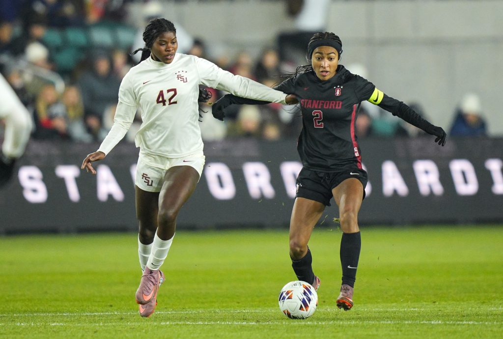 The play started with a corner kick from the flag. Stanford made the initial play on the ball, but FSU’s Yuna McCormack stopped that clearing attempt. Janet Okeke played a diagonal ball to the right flank that hit Taylor Suarez in stride. Suarez, with her first touch, served a cross that Stanford’s Elise Evans deflected.