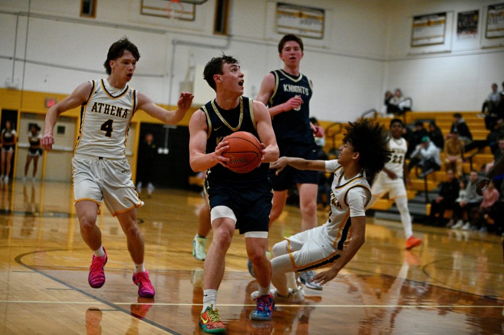 Jackson Birch led Pittsford Sutherland with 21 points to open the season with a win. Sam Byrne (18), Zach Neiderer (17), and Tyler Allen (14) also reached double-digits. Ethan Wachter, Mason Harrington, and Jahyden Maioreni all scored two. Russell Ellis led Athena with 14 points, while Caleb Brown tallied 12. Coran Webb scored six, while Cole Poth and Colten Waterman tallied five. Josiah Dueker (4), Ian Dodson (2), Shabazz Barnes (2), Felix Santiago-Lopez (1), Xaviel Lewis (1), and Edin Jusic (1) rounded out scoring.
