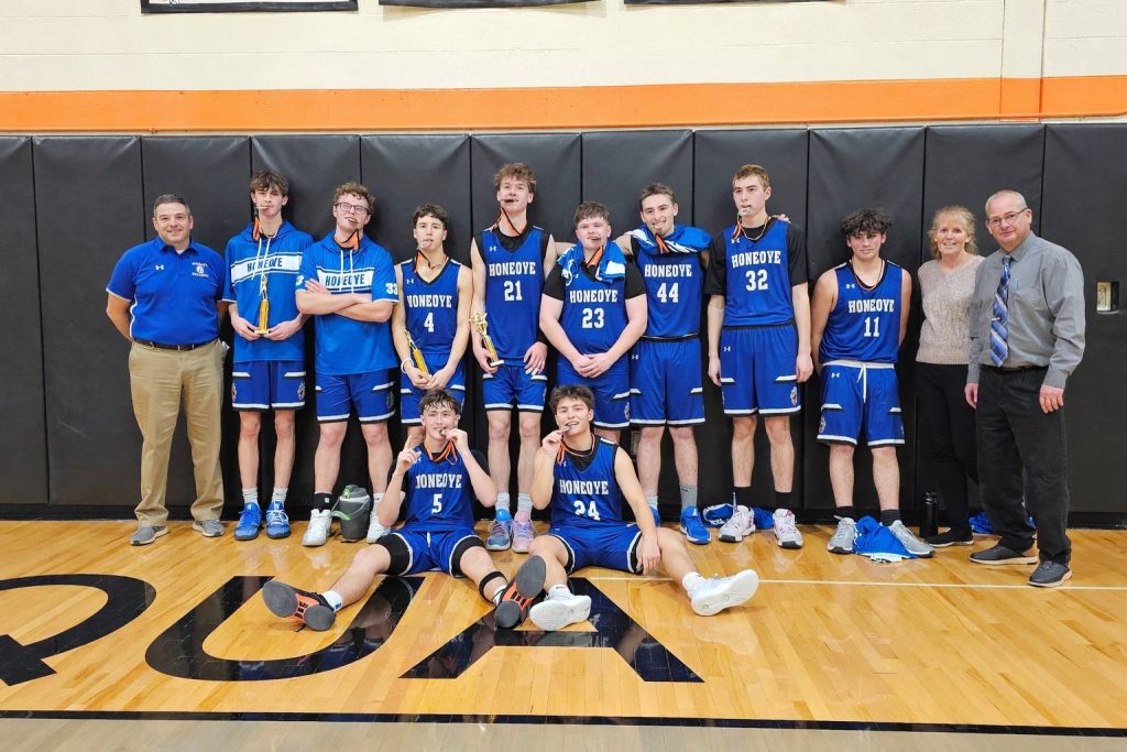 Tournament MVP Landon Washburn dropped 49 points, knocking down seven three-pointers along the way to lead Honeoye to the Tink McVean Memorial Tournament Championship. Dylan Washburn added nine points while Braiden Schneider followed with eight. Eli Stumbo picked up four points while Garret Goethals recorded two. For Keshequa, Aiden Upright led the way with a double-double of 19 points and 12 rebounds. Cameron Wood netted 12 points while Nate Hillier was just shy of a double-double with nine points and eight boards. Aiden Howe also scored nine points while Zack Smathers collected four. Brady Wood rounded out the scoring with three points. Joining Washburn on the tournament team include Keshequa’s Upright and Wood, Brayden Merritt (Warsaw) and Connor Binkowski (Haverling).