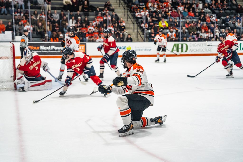 The Colonials (4-14-2, 4-7-1) scored the only goal in Saturday’s first period, with freshman Bruce McDonald swatting home a rebound at 18:13.