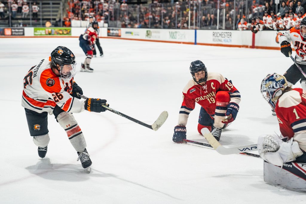 But Konyen didn’t come to the Henrietta campus simply so he could play college hockey. He was attracted by the expectation of conference titles and the history of NCAA regional appearances.