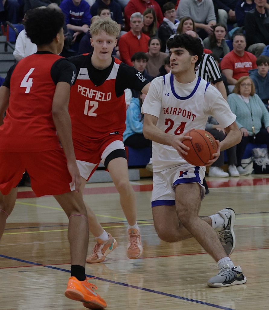 Hadi Dergham scored seven of his game-high 23 points in the third quarter when Fairport, No. 15 NYSSWA Class AAA, pulled away from a single-digit game. Dergham connected twice from the floor including once from behind the 3-point and converted 2-of-4 free throw attempts as the Red Raiders used a 26-8 advantage to take a 27-point lead into the final eight minutes of action. Teammate Sam Roselli scored eight of his 17 points during the third. Gannon Culver and Alex Grejda added eight apiece in the win. Jon Roessel (6), Antonio Nurse (4), Noah Meabon (6), Ethan Torres (2), Jeremiah Crocker (1) and Matt Swan (2) also contributed to the scoring for Fairport. Alex Bartnicki and Chris Unger both scored 10 points to lead Schroeder. Kalin Watkins Jr. added eight for the Warriors. Andrew Lozovatskiy had seven points. Luke Rogers (2), Eli Stockmaster (2), Matt Carey (6), Sam Nick (6) and AJ Amico (6) also scored for Schroeder.
