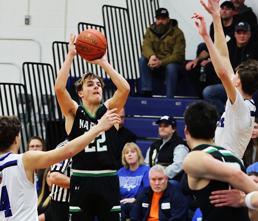 Nolan Peterson scored a game-high 14 points as Pembroke won its sixth straight. The Dragons held Royalton Hartland to nine points in the first half. Owen Shultz added 13 for Pembroke in the win. Luca Baker also chipped in with seven points and five assists. Tysen McCaa led Royalton Hartland with 13 points.