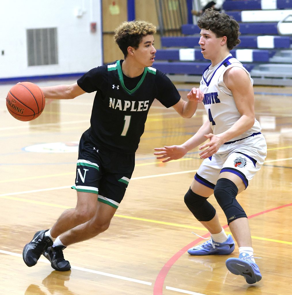 In the completion of a suspended game, Landon Washburn scored 17 of his game-high 31 points in the second half as No. 10 NYSSWA Class C Honeoye outscored Naples 37-20 in that half en route to the Bulldogs’ third straight win. Washburn tacked on 12 rebounds and eight assists to his line in the win. Braiden Schneider added 20 points and seven assists for Honeoye. Dylan Washburn also got into double figures for the Bulldogs with a double-double, notching 15 points and 10 rebounds. Other scorers for Honeoye included Kyle Schmitt (1), Kevin Schmitt (3) and Eli Stumbo (2), with Stumbo also grabbing eight rebounds. Naples was led by Isaac Ward with 18 points. Collin Kenney and Maddox Mannella also got into double figures with 12 and 10 respectively. Other scorers included Donovan Lincoln (3), Rowan Biggs (3) and Connor Betrus with eight points and 11 rebounds.