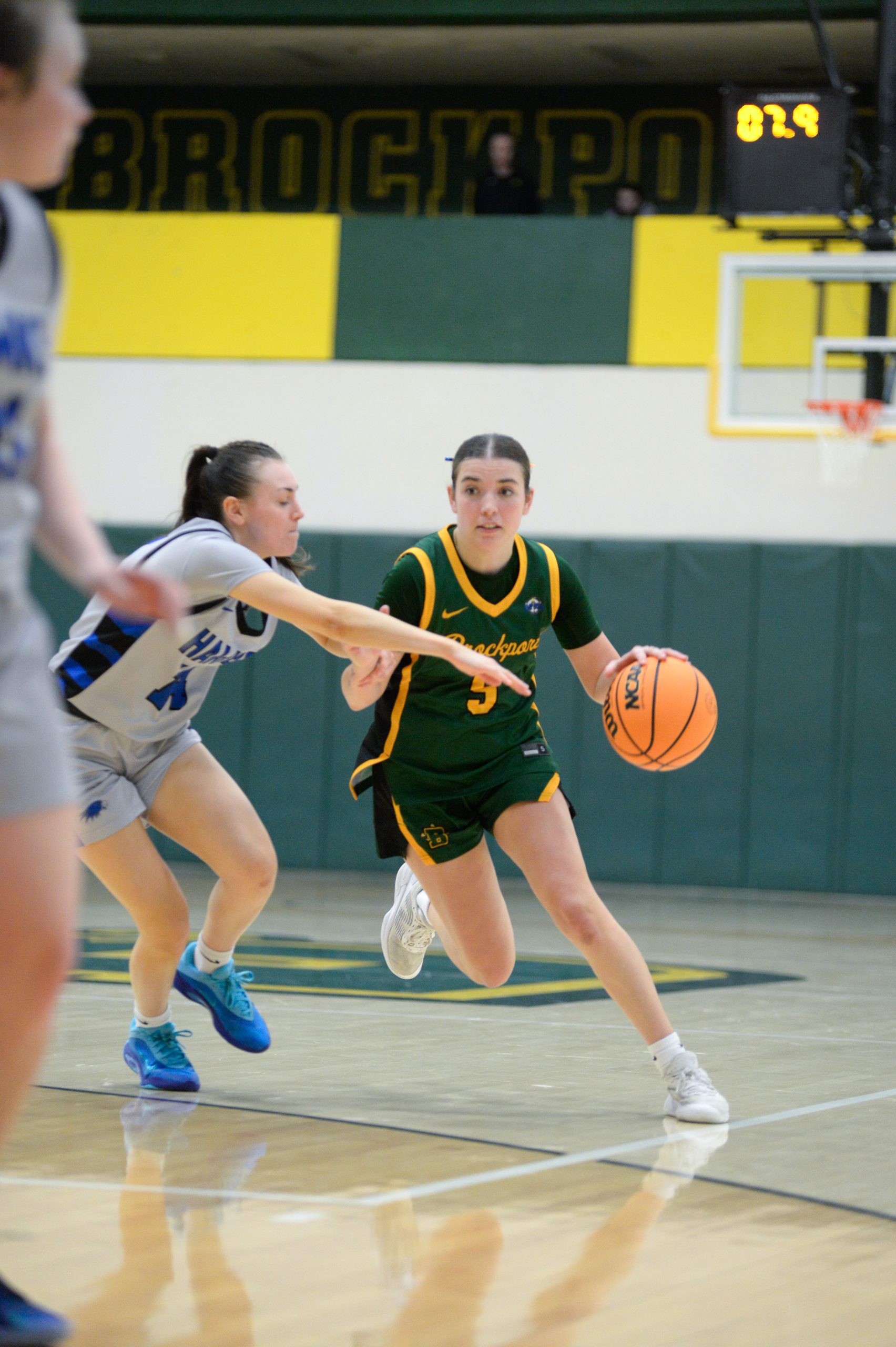 After a back and forth first quarter that ended with a five-point Golden Eagle lead, the Brockport defense clamped down from there. The Golden Eagles went on to cause eight turnovers for 10 points that increased Brockport’s lead to 10 at halftime.