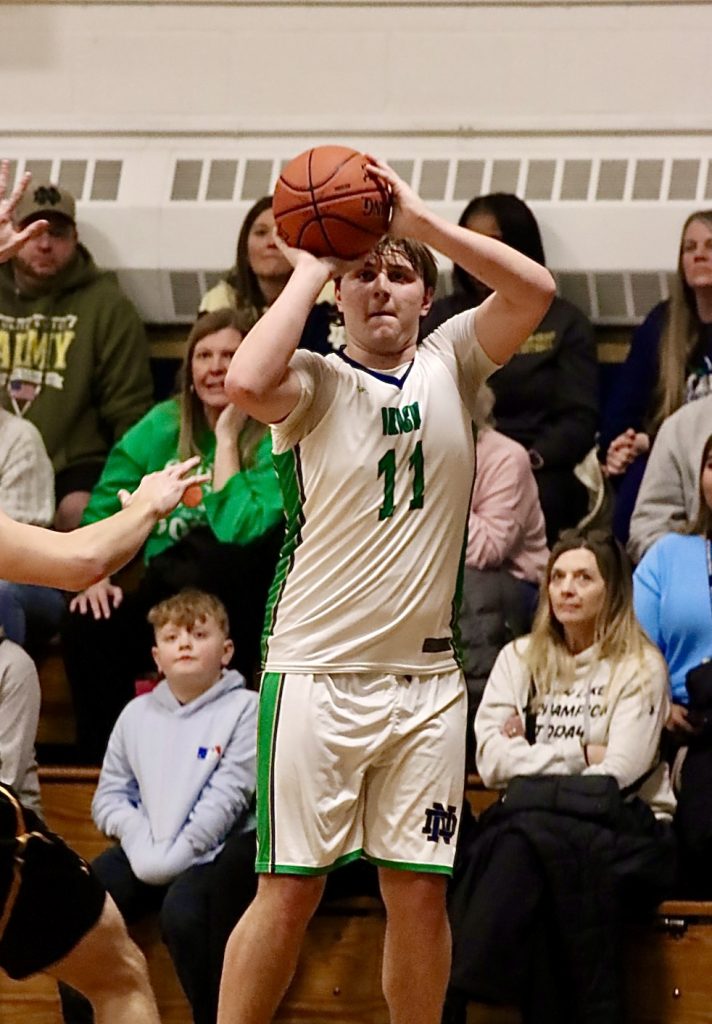 Finn Davies netted a team-high 19 points with 10 coming in the opening eight minutes as Notre Dame Batavia jumped out to a 23-11 lead it did not relinquish for its 11th victory in the last 12 outings. The win was the Fighting Irish’s 15th win by double-digits this season. Matthew McCulley scored 11 of his 15 points in the first half while Carter Suro posted 13 points. TJ Cephus reached double-figures with 11 points while Chase Antinore chipped in eight points. Evan Fitzpatrick collected five points while Drew Beachel knocked down a three. Ben Ferrando and Mackoy Hall tallied two points apiece. For Pavilion, Keean Cummins dropped a game-high 31 points with 20 coming in the second half and connected on six threes along the way. Liam Campbell poured in 16 points while Joe Meechan added seven points. Rey DeJesus (5), Jaylin McFadden (2) and Hayven Cordes (1) rounded out the scoring. Notre Dame Batavia travels to No. 3 Naples for the quarterfinals.