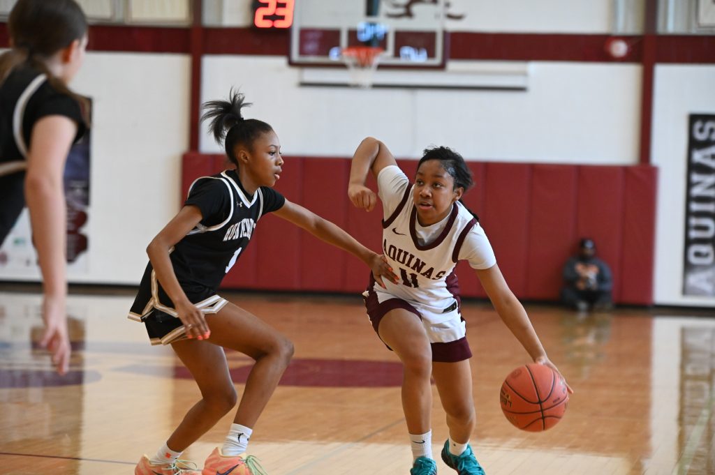 Loren Green scored 27 points, and Aquinas clinched a spot in the AAA semifinals. The win was the Li’l Irish’s sixth straight by double-digits. Jade Harvey and Carlé Thomas both added 12 points in the win. Aquinas will play against No. 7 Greece Arcadia in the semis.