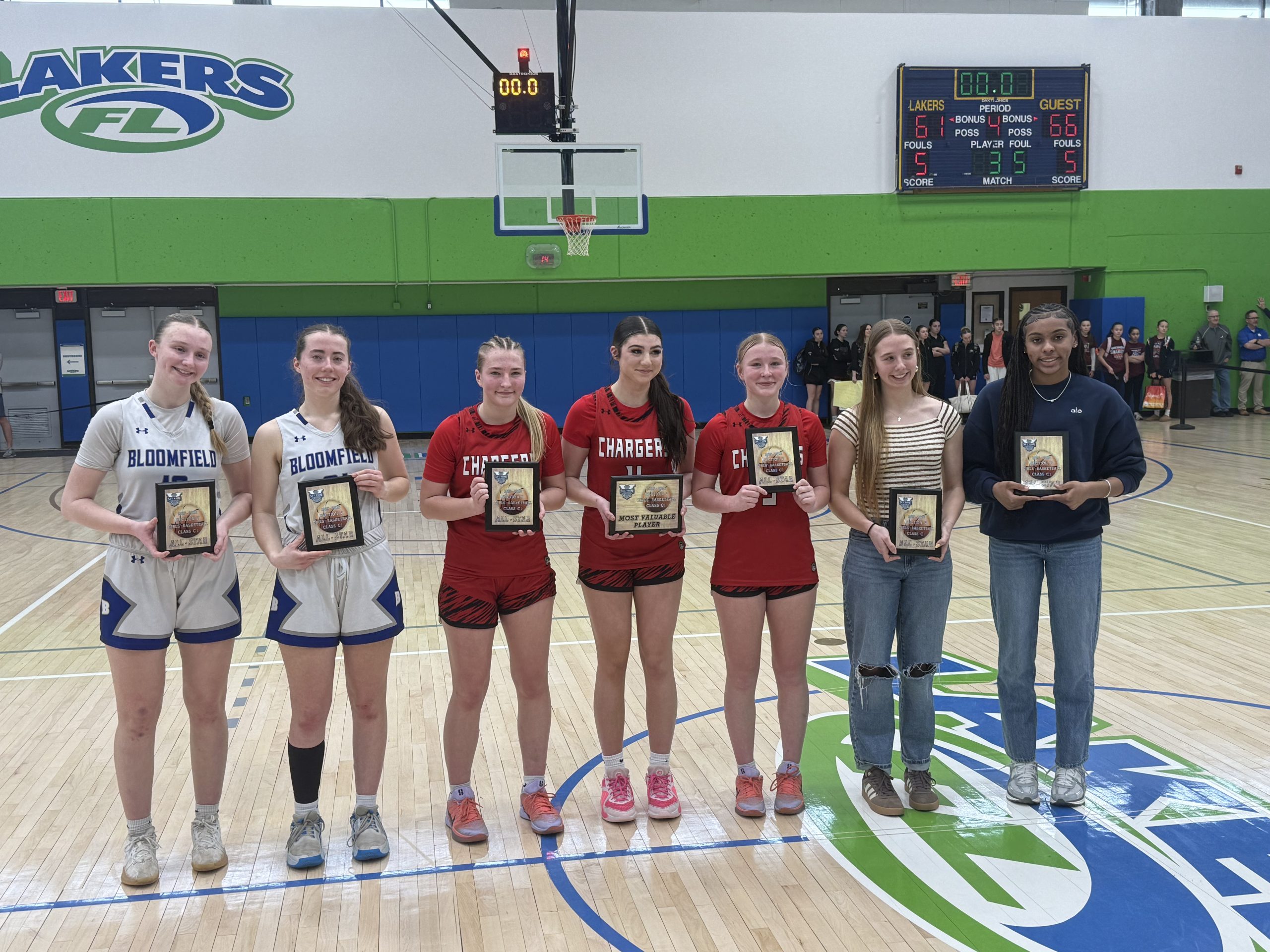 In the fourth quarter, Bloomfield had restored its lead and led 46-40 with five minutes to go. Three-pointers by Kara Mahany and Mackenna Mullen helped the Chargers strike back with a 12-3 run to take the lead with less than a minute remaining.