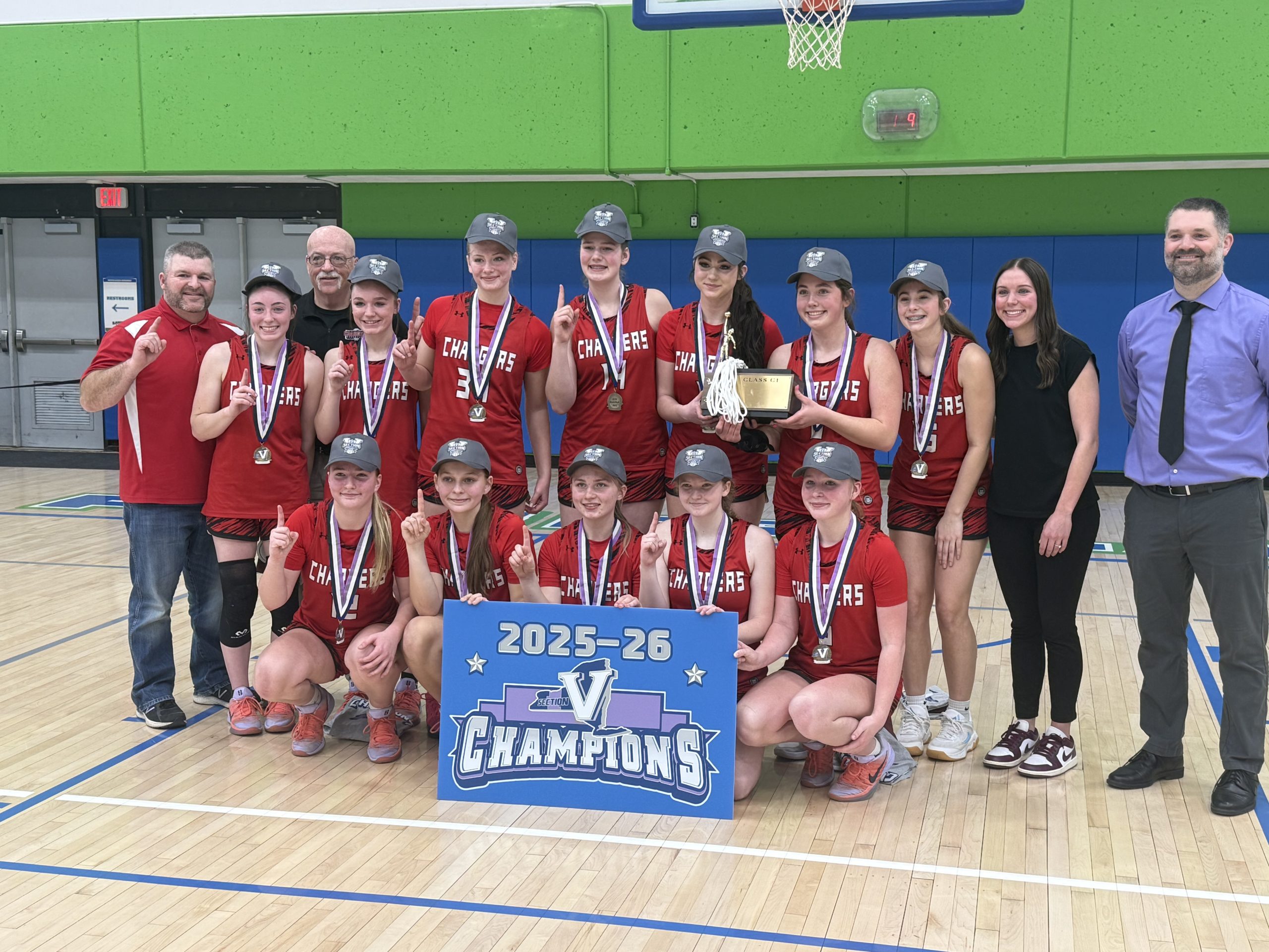 The Chargers (No. 2 NYSSWA Class C) rallied from a 16-point first-quarter deficit to defeat Bloomfield (No. 19 NYSSWA Class C) 66-61 in overtime in the Section V Class C1 title at Finger Lakes Community College. The win gives them their first sectional title as a merged program.