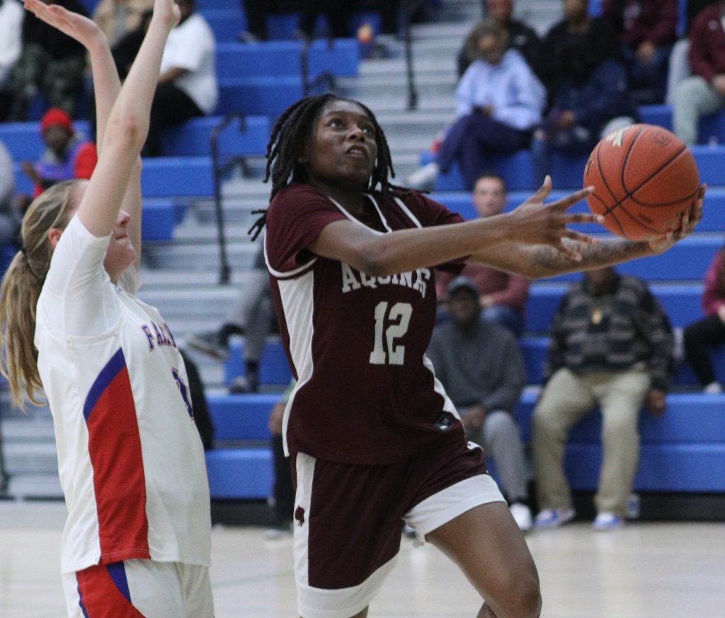 After a quick four points for Fairport on layups by Eva Monoski and Samara Rizzo, the game was tied 39-39 just a minute into the fourth quarter. An and-one response from senior forward Jade Harvey gave Aquinas the lead right back. The Red Raiders did not go away though as Rizzo netted four straight points and assisted another to cut the lead to two with 3:25 remaining and Aquinas needed a timeout.