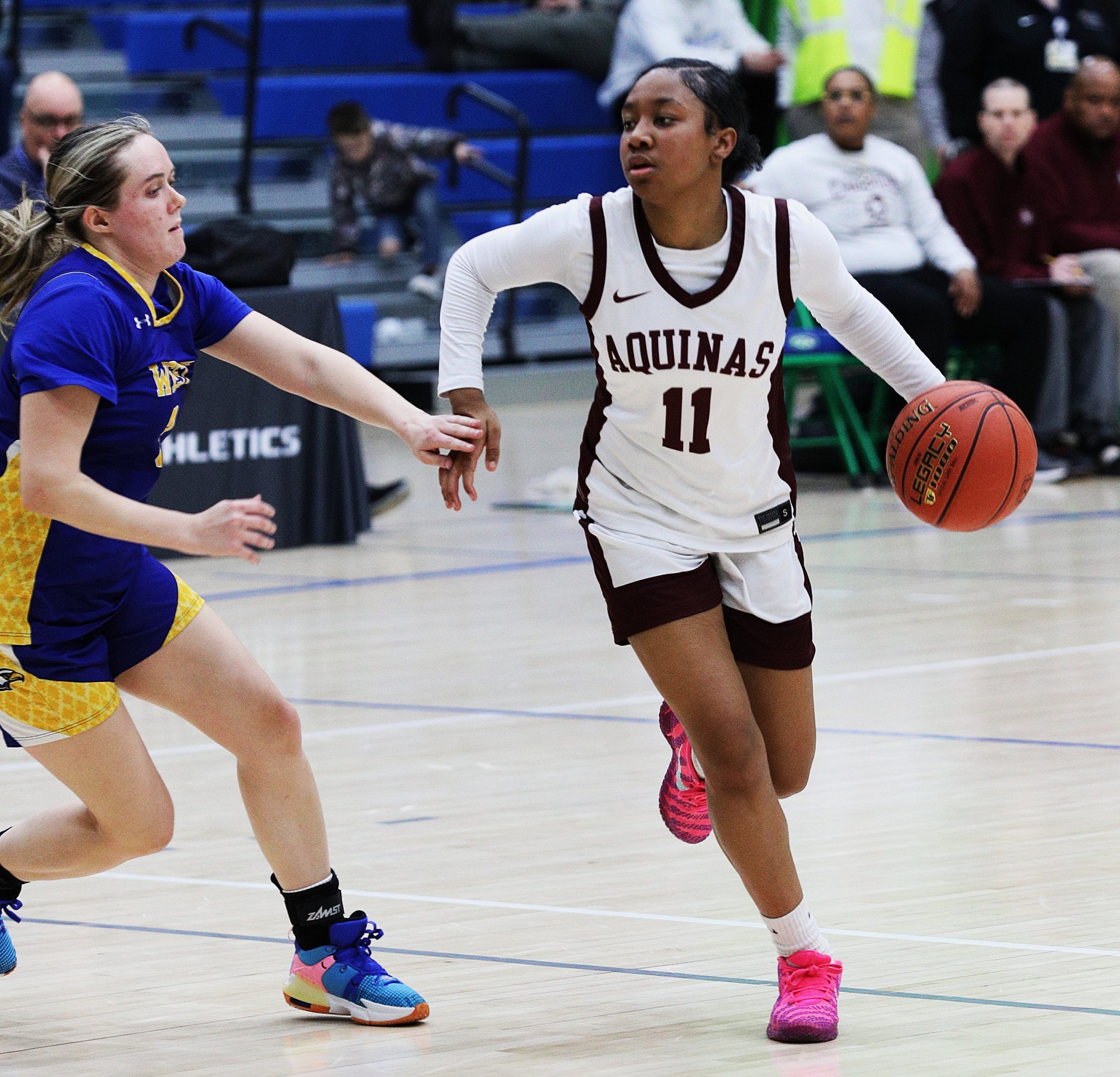 “First of all second quarter, I tip my hat to West Seneca because they came out and they junked us. They played a junk defense and we got a little stagnant,” Aquinas head coach Mark Loria said. “We came out in that third, we wanted to get in our process, turn you over and get in transition, but that wasn’t good so we went man-to-man and made sure to switch everything. I think overall the girls fought, they made the right adjustments, they made huge plays when it mattered and then we were able to accelerate in that third quarter. Then once we get on a roll, we’re tough to stop.”