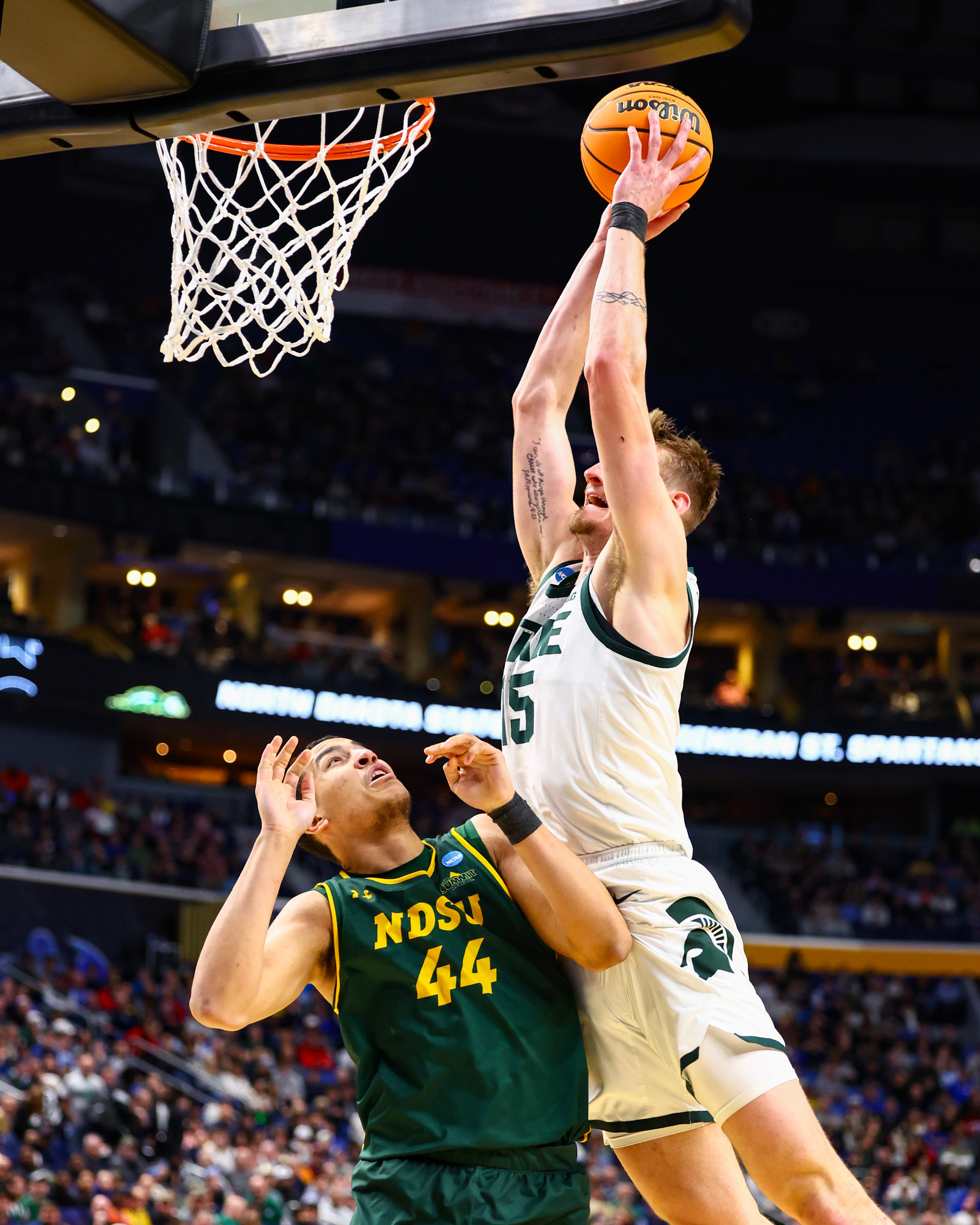 BUFFALO, N.Y– Carson Cooper put together 20 points and 11 rebounds while Jeremy Fears Jr. dished out 11 assists, and No. 3 seed Michigan State used big run in the first half to help take down No. 14 seed North Dakota State 92-67 during NCAA Tournament First Round action at the KeyBank Center on Thursday.