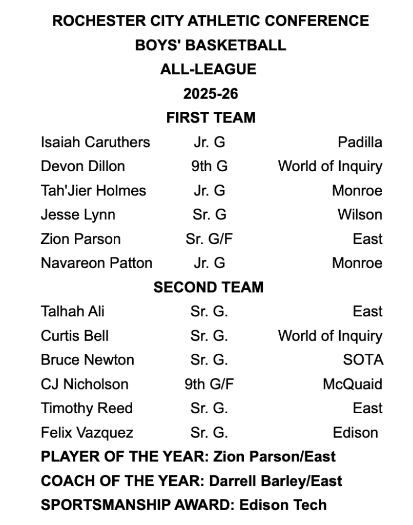 Rochester City Athletic Conference (RCAC) coaches named the senior guard/forward the league’s Player of the Year.