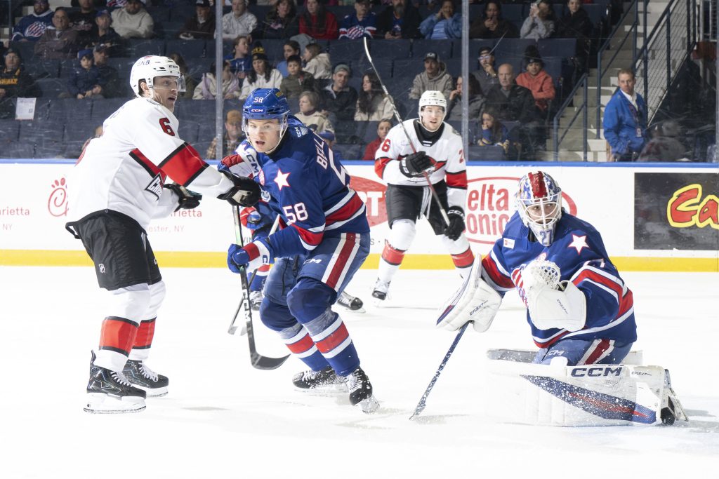 Noah Laaouan and Konsta Helenius also scored for the Amerks, who are home again Friday (against Belleville) and Saturday (against Providence on Don Stevens Night).