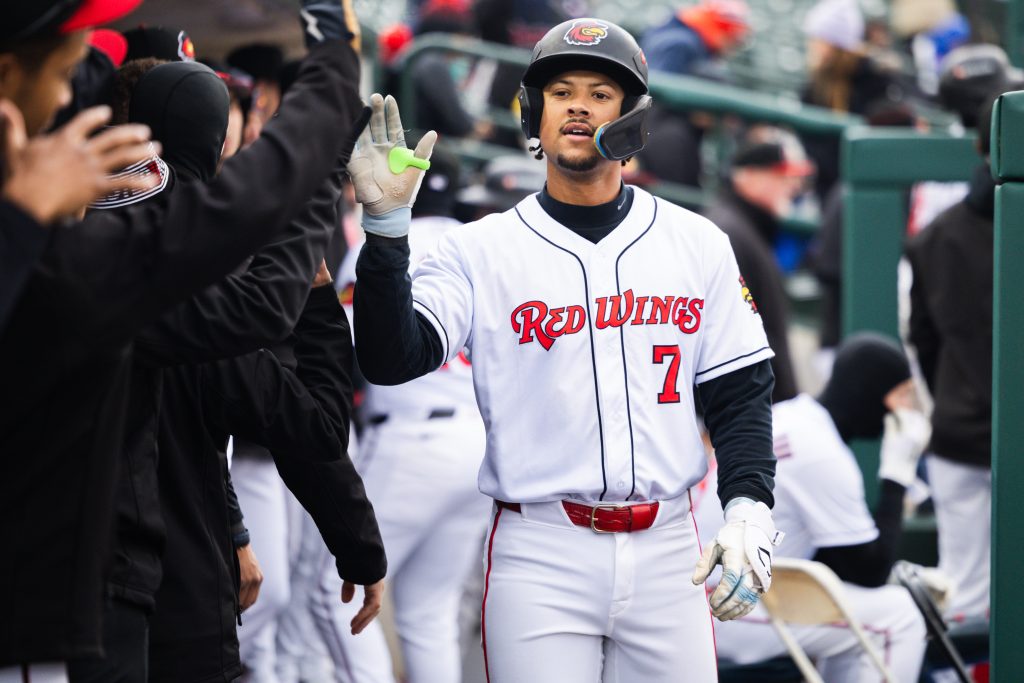Initially, the didn’t have much to cheer about, as Scranton took a lead on the very first batter of thw game. On the third pitch from Riley Cornelio, Jasson Dominguez got hold of a slider and golfed it over the right-field fence to make it 1-0 for the Yankees’ affiliate. Later in the inning, Scranton first baseman Oswaldo Cabrera found the gasp in right-center, hitting the ball between the Rochester outfielders before it came to rest at the foot of the wall. By the time the Red Wings got the ball back into the infield, Cabrera was at third for a triple. A sacrifice fly by the next batter, Max Schuemann, extended Scranton’s lead to 2-0.
