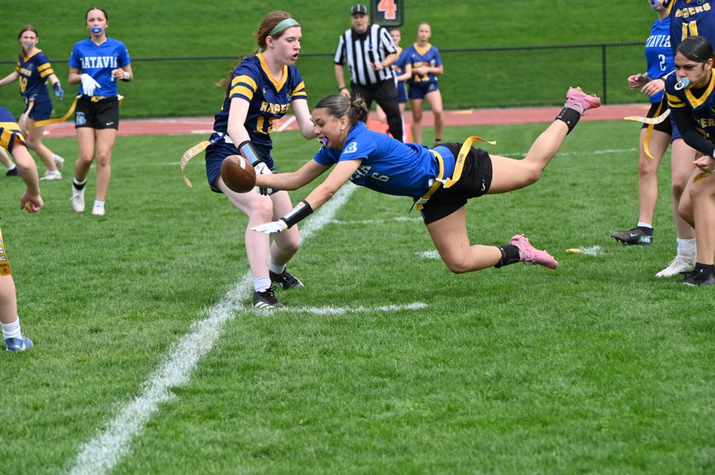 Batavia’s Leilah Manuel ran in a touchdown in the second quarter and later scored two more in the fourth quarter to give Batavia its first win of the season. Manuel ultimately finished with 131 yards on the ground and 84 through the air. The junior also led Batavia with seven flag pulls (including one for a loss). Kaylynn Peyman added 37 yards, while Libby Grazioplene tallied 22 yards. Miyah Manuel recorded 75 receiving yards and four flag pulls with two passes defended. Violet Lopez accounted for five flag pulls, including one for a loss and a sack.
